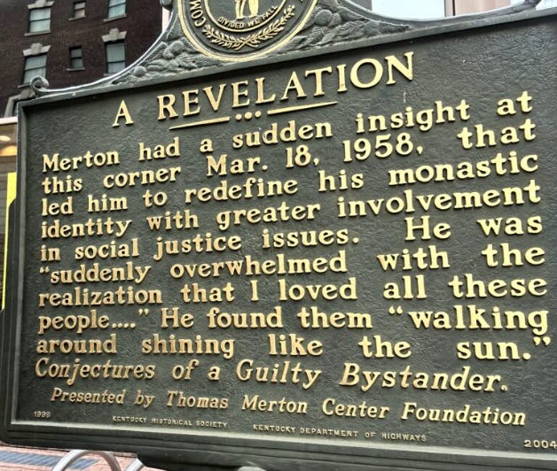 Love! The plaque about Thomas Merton's realization sits 2 blocks from my office. I walk by it often.